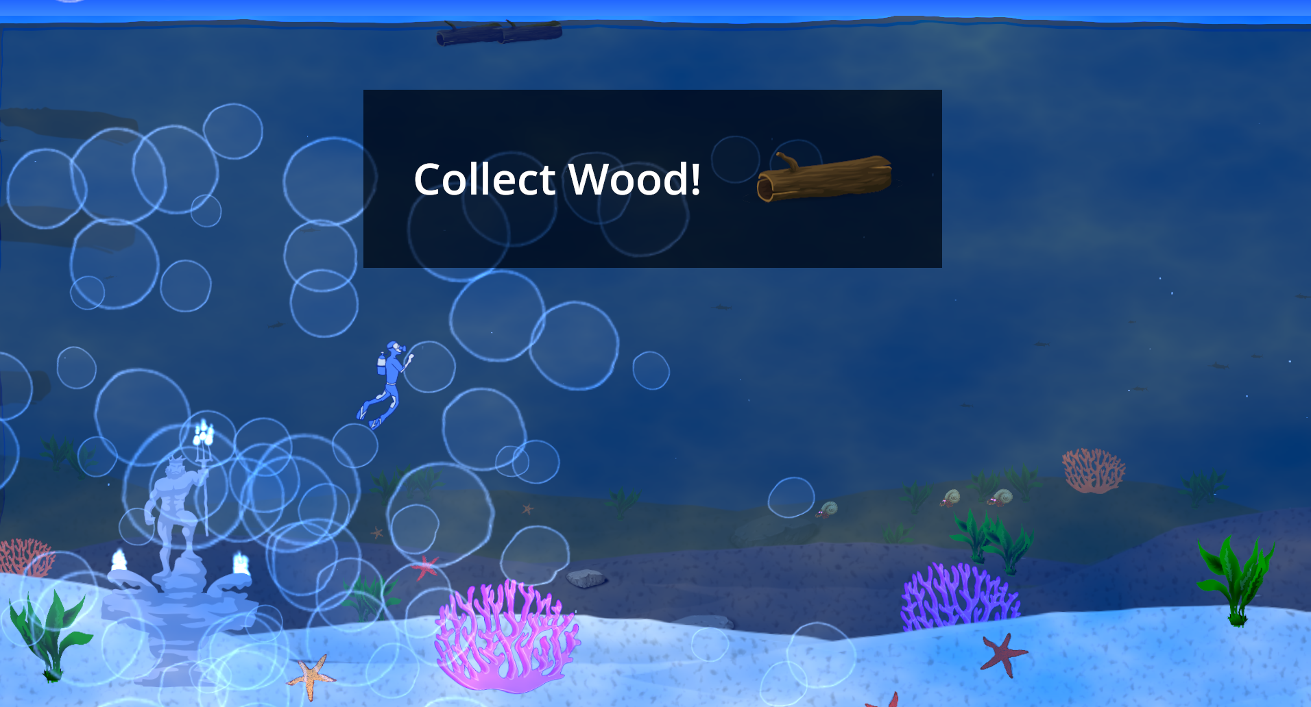 Survive long enough to photograph all the fish! The Diver follows your mouse to fish... and foes. Navigate the depths of the ocean, gather resources and photograph fish in this 2.5D aquatic adventure!